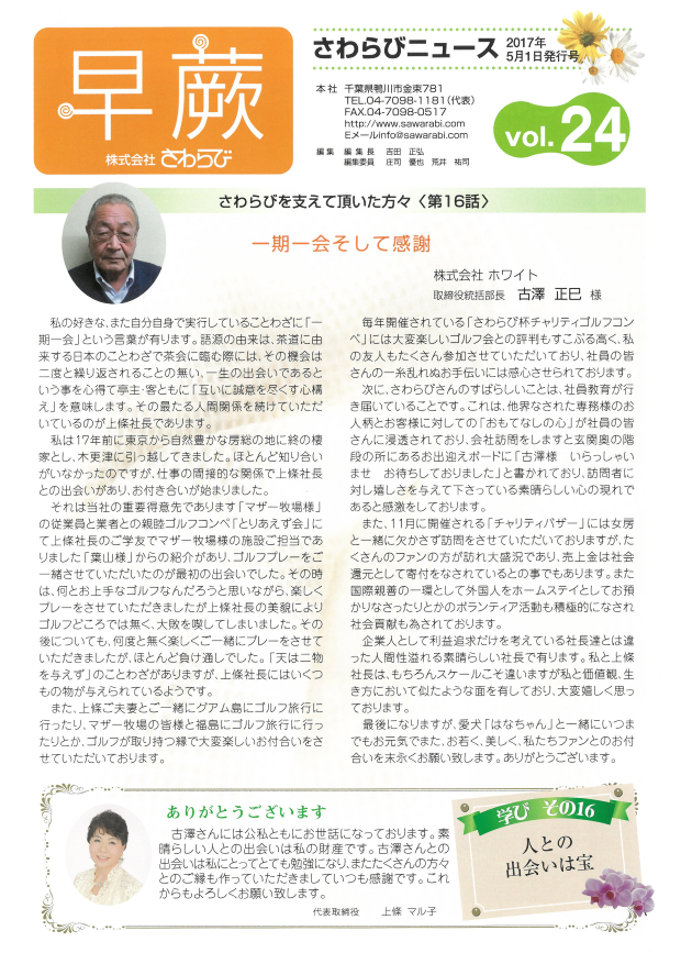 2017年5月1日発行号巻頭記事第16話 古澤 正巳 様「一期一会そして感謝」